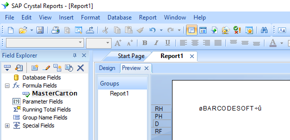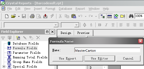4. Drag and drop the master carton code formula field in your crystal report design view.
