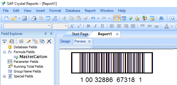 5. Right click master carton code formula field and choose "Format Field" from context menu. Then choose "MasterCartonmHr" font typeface.