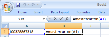 6. Close Visual Basic and go back to your spreadsheet. Now, you can use the following macro to encode data: mastercarton. When you have lots of data to process, you can just copy and paste the master carton code macro to the whole column / row of data. All your master carton code will be ready immediately.